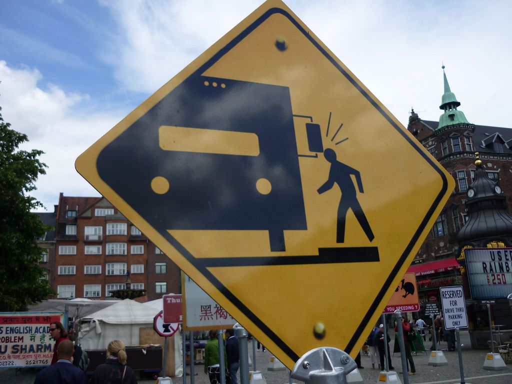 What isn't a problem in one country, might be a hazard in another. The authorities have gotten so tired of pedestrians knocking their heads against bus side mirrors that they decided to put up a sign to make pedestrians aware of the possibility.