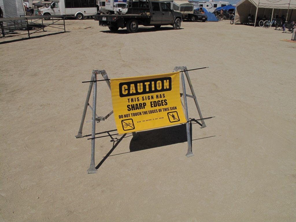 Instead, they chose to display predominantly that the sign has sharp edges. Maybe the organizers had experiences with people getting hurt by moving the sign?