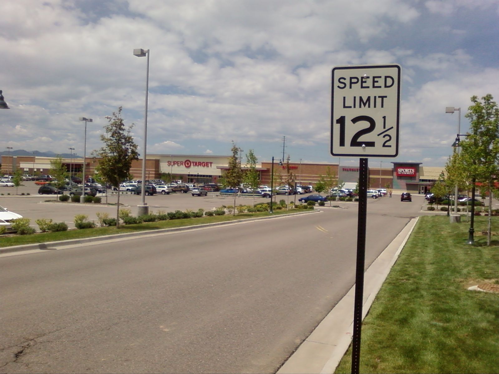 The authorities stated that drivers should not exceed 12.5 mph while using the entrance road to the shops. It seems that 13 mph was too much, and 12 mph was too little. To be as accurate as possible, the authorities instituted a maximum speed of 12.5 mph to ensure no pedestrian gets hurt.