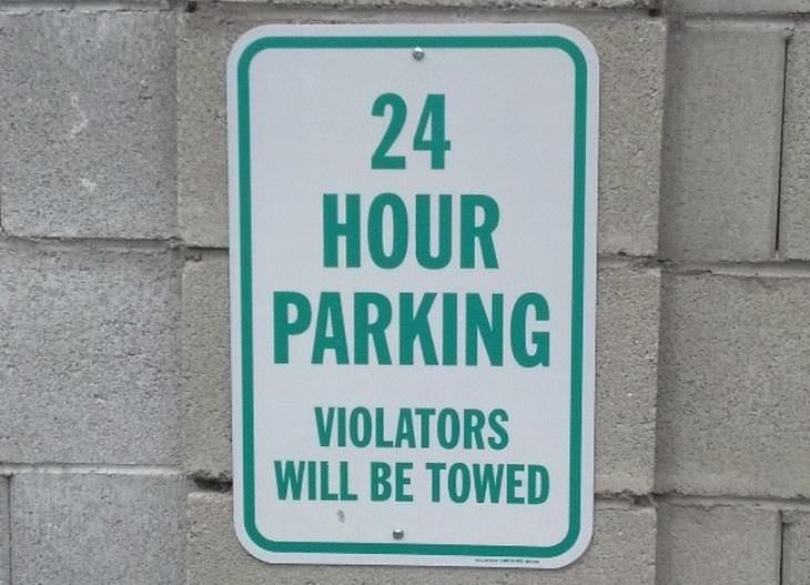 What do you do when you want to park in front of this sign? Do you drive somewhere else, or do you park for at least 24 hours? If you don't park in that vicinity for at least 24 hours, the authorities will tow your vehicle.