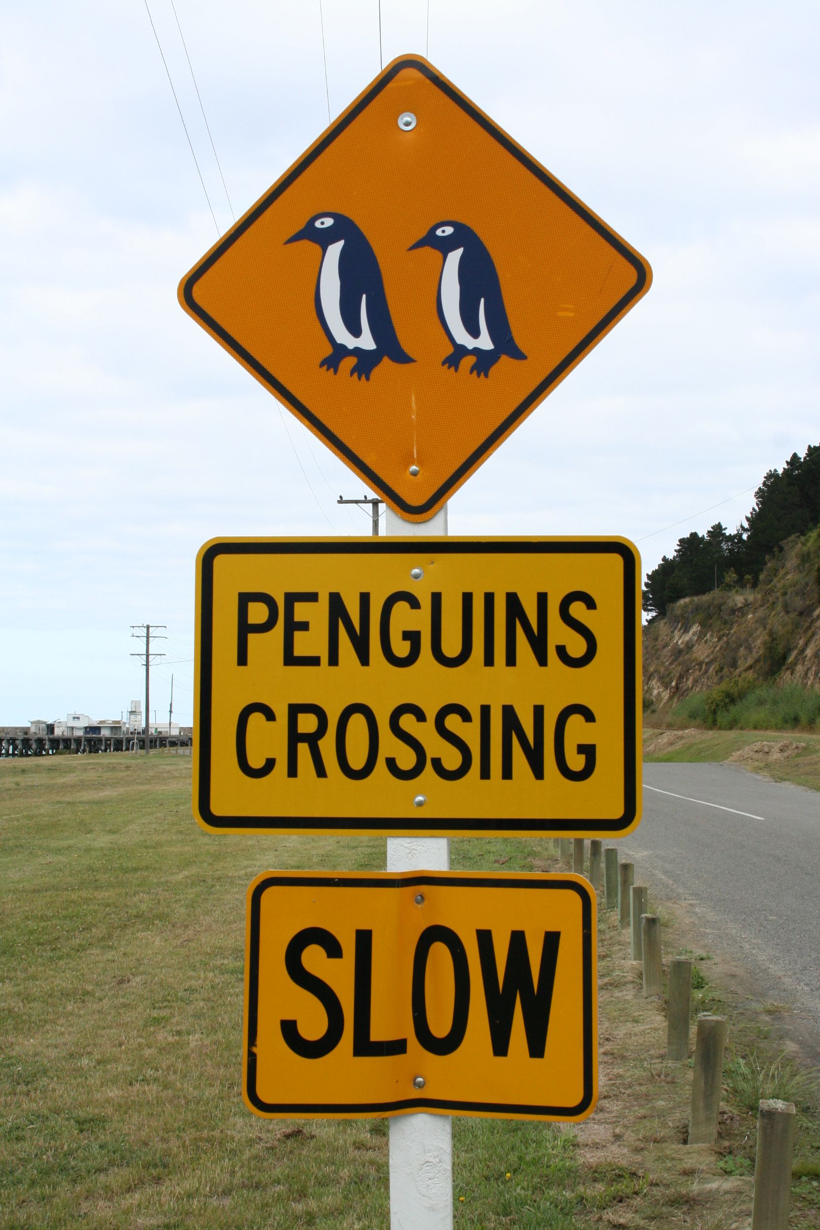 Finding penguins crossing a random street is unlikely. If you are traveling on this road, you should be careful not to run over any penguins, but the chances of coming into contact with them on that stretch are slim to none.
